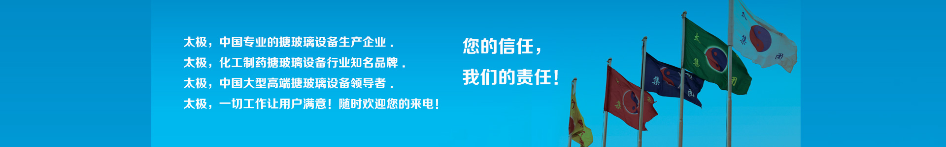 感謝您對淄博太極工業(yè)搪瓷有限公司的信賴!當(dāng)您進(jìn)入到此頁面時,您已成為我們尊貴的客人,我們將微笑歡迎您的到來,希望給您每一天帶來好心情,并竭誠為您提供服務(wù)。中國太極搪玻璃設(shè)備以優(yōu)質(zhì)的產(chǎn)品和服務(wù)贏得市場,太極作為中國化工裝備協(xié)理事單位,已連續(xù)多年并被授予中國化工裝備行業(yè)“突出貢獻(xiàn)單位稱號”。產(chǎn)品暢銷全國各地,并以遠(yuǎn)銷五十多個國家和地區(qū)。