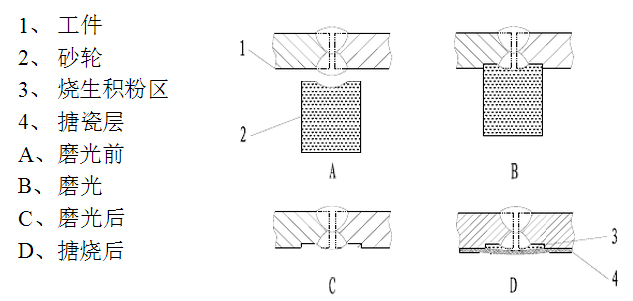 很多小的搪玻璃反應(yīng)釜生產(chǎn)廠家或小作坊在設(shè)備生產(chǎn)制造過(guò)程中,由于生產(chǎn)工藝的不成熟,較容易出現(xiàn)燒成不夠(俗稱燒生)或焊縫內(nèi)氣體沖破搪瓷(俗稱電焊泡)兩大缺陷。一般采用埋弧焊的內(nèi)縫的焊縫余高可達(dá)2-3mm,這樣,在磨光工序時(shí)會(huì)將砂輪表面形成弧槽,當(dāng)加工下一工件時(shí),會(huì)將焊縫兩側(cè)磨洼下去,再經(jīng)噴粉、搪燒,積粉區(qū)因溫度積累不夠,而形成“燒生”現(xiàn)象,這類產(chǎn)品從表面是無(wú)法肉眼判斷出來(lái)的,用戶將該產(chǎn)品投入使用后,在交變載荷作用下,積粉區(qū)表面搪瓷由于脆性極高,且缺乏鋼板支持,較易碎裂,也就是俗語(yǔ)的“爆瓷”現(xiàn)象。而且存在的未經(jīng)燒成的“生粉”是沒(méi)有任何防腐能力的,以致物料直接滲透過(guò)積粉區(qū),腐蝕鋼板基體,破壞容器。為了我們方便大家理解,請(qǐng)結(jié)合下圖就行分析。