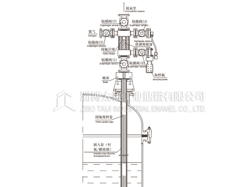太極反應(yīng)釜手動(dòng)取樣系統(tǒng)(MANUAL SAMPLING SYSTEM FOR REACTORS)為防腐手動(dòng)取樣裝置。取樣物料接觸各部件均采用里襯PFA、襯氟材質(zhì),達(dá)到防腐目的;四氟吸料管配套插入管(襯氟/搪玻璃材質(zhì))浸于釜內(nèi)料液以下,增加其過程的穩(wěn)定性。通過抽真空將物料在系統(tǒng)中安全、快捷取樣。