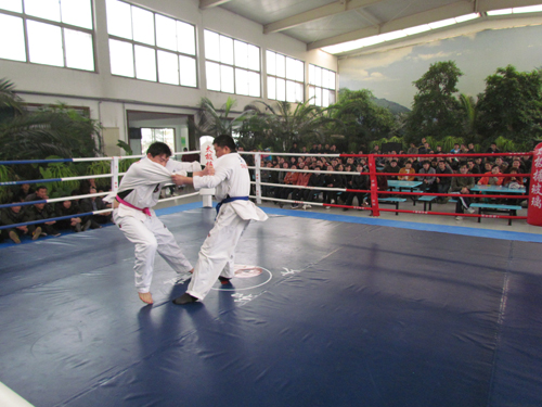 背摔、抱雙腿扛摔、抱單腿枕、抱腿功、掏腿、扣腿、揣絆功這些很專業(yè)的動作,在我們太極這群男子漢身上卻都是那樣運(yùn)用自如。比賽期間太極公司散打隊(duì)員也上臺即興表演,更是有我們太極的“歌手”獻(xiàn)歌助興,掌聲、喝彩聲、吶喊聲、歡笑聲……此時此刻每一個太極人都無比的歡樂和驕傲。